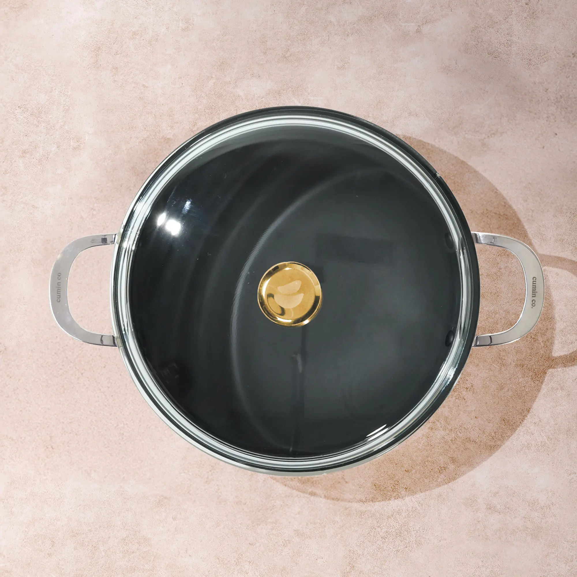 Thoughtfully crafted for the fast pace of modern Indian kitchens, this 32 cm, multifunctional Kadai brings effortless ease to everyday family cooking. Made from enamel cast iron that’s 60% lighter, it combines timeless durability with a patented titanium-infused enamel that’s 100% non-toxic, rust-resistant, and easy to clean that is built to cook beautifully, day after day.